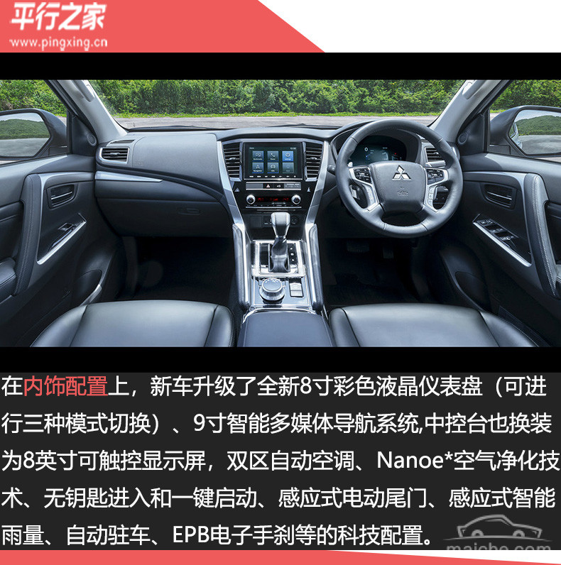 此外新车提供USB充电接口和手机互联功能,在安全性上,新车还增加了车道变换辅助和盲点监测等功能。与老款帕杰罗·劲畅(进口)相比,对整体的座舱内饰、科技、舒适配置进行了一个升级,同时取消了一部分实体按键。
